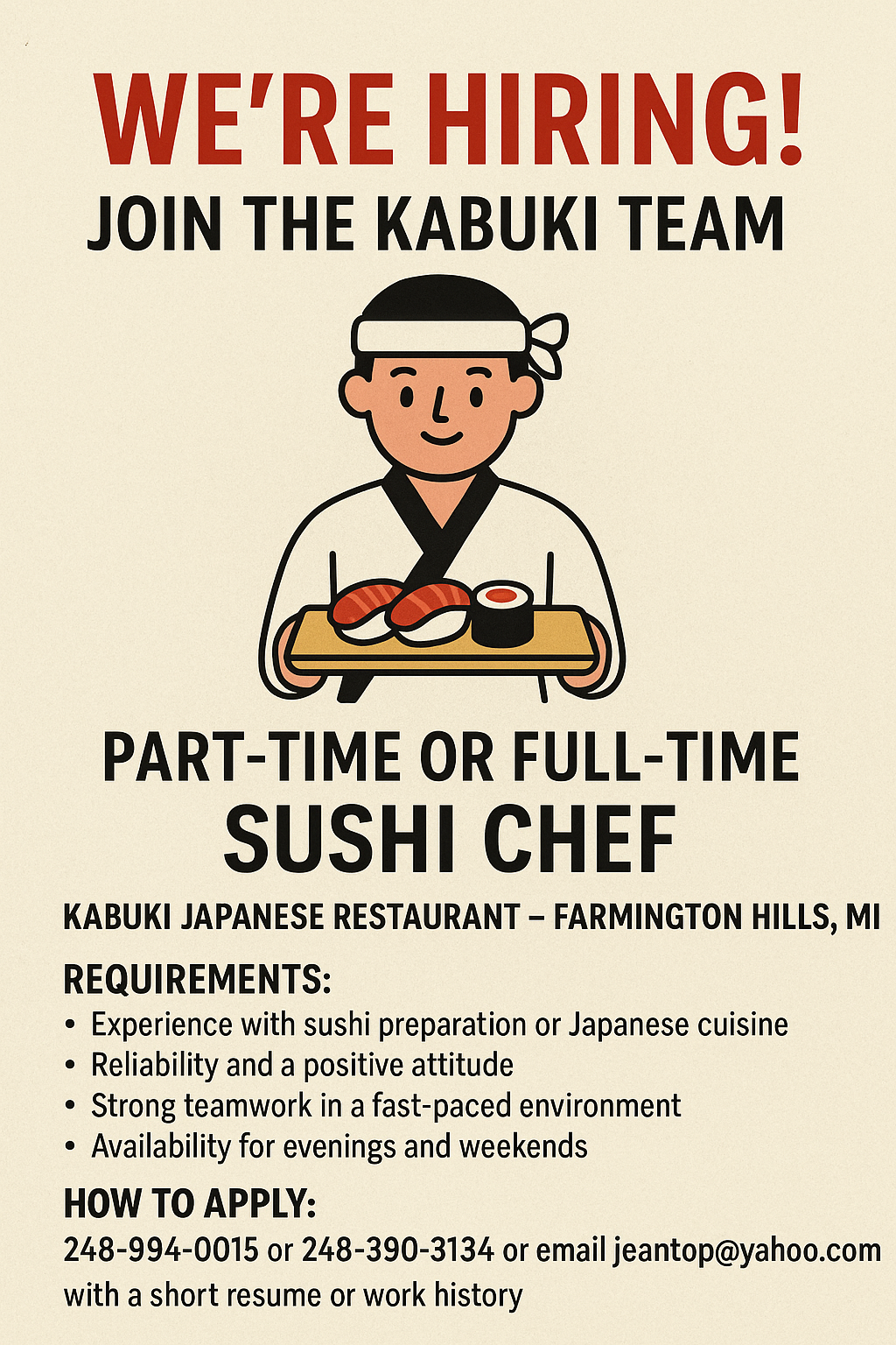 My favorite sushi joint in Farmington Hills!! Food is always on point, servers always friendly too!